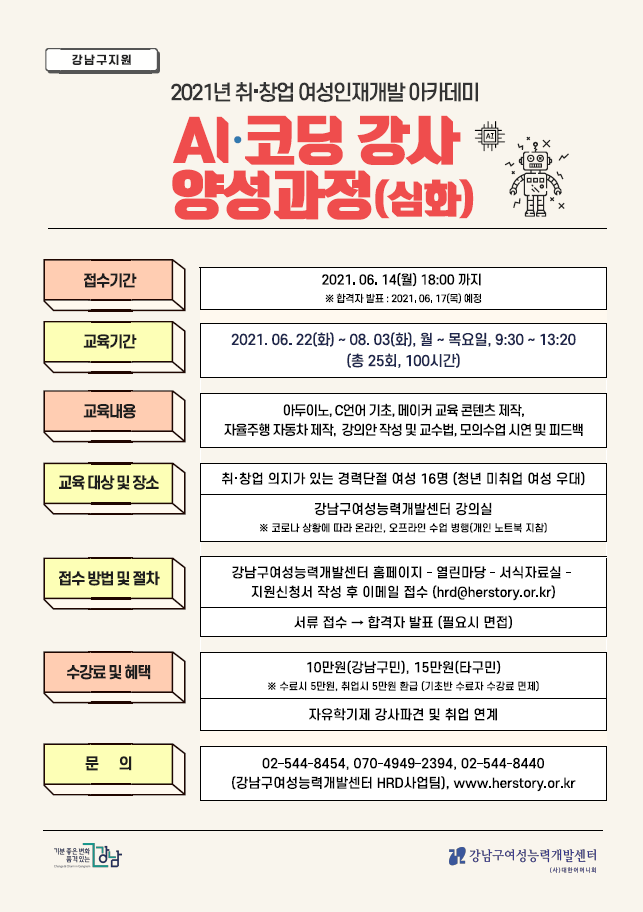 Á¦¸ñ °­³²±¸¿©¼º´É·Â°³¹ß¼¾ÅÍ AIÄÚµù °­»ç ¾ç¼º°úÁ¤(½ÉÈ­¹Ý)